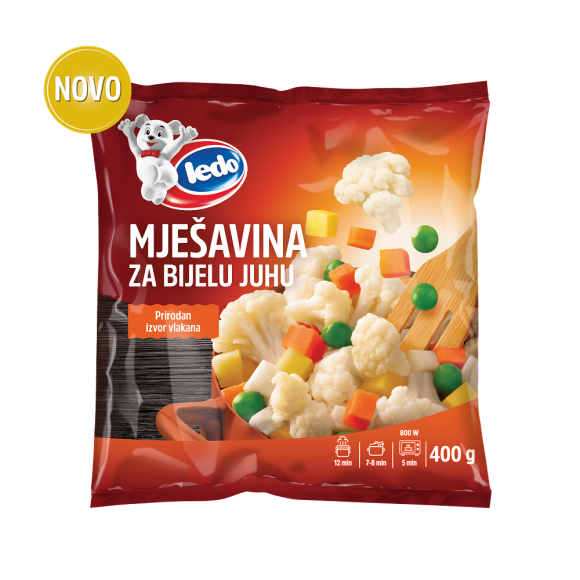Mješavina za bijelu juhu sastoji se od cvjetače, krumpira narezane na kockice, mrkve, peršina i graška. Mješavina povrća dostupna vam je tijekom cijele godine.