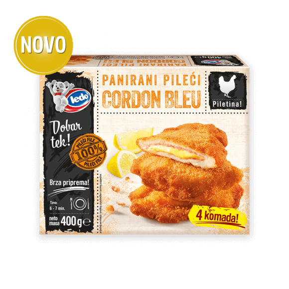 Poznato jelo Cordon bleu ukusan je brzo smrznuti proizvod od pilećeg mesa. Ukusno pileće meso punjeno je sirom i šunkom koji mu daju poseban okus. Namjenjen je svim generacijama željnih ukusnog obroka.