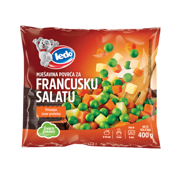 Ledo miješano povrće za salatu sastoji se od nasjeckane mrkvice, graška i krumpira te je savršeno za pripremu različitih osvježavajućih jela.