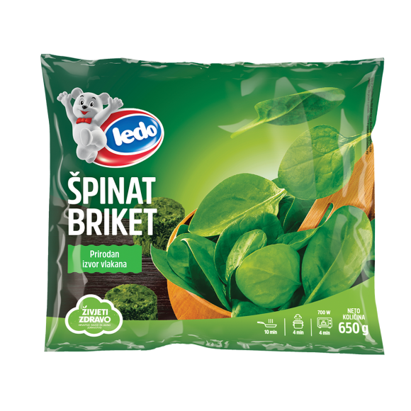 Ledo Špinat briketi su briketi fino sjeckanog špinata, a njihova dodatna prednost jest mogućnost lakšeg određivanja porcija. Želite li svojim ukućanima pripremiti špinat s dodatkom vrhnja ili mlijeka u samo desetak minuta, Špinat briketi najbolji su odabir. Jednako tako dostupni su tijekom cijele godine i spremni za vaše kulinarske avanture.