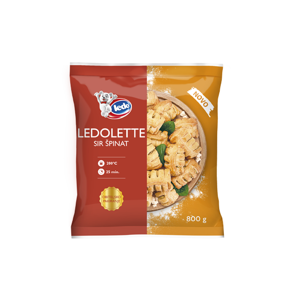 Isprobajte nove Ledolette sa sirom i špinatom, kombinaciju kremastog sira i špinata koje se skladno nadopunjuju u slojevima Ledova lisnatog tijesta. Ledolette sir špinat osvajaju svojom uravnoteženom kombinacijom tekstura i okusa. Pakiranje od 800 grama idealno je za obiteljska okupljanja i prijateljska druženja, a zahvaljujući jednostavnoj pripremi, s njima ćete uvijek spremni dočekati čak i nenajavljene posjetitelje.
