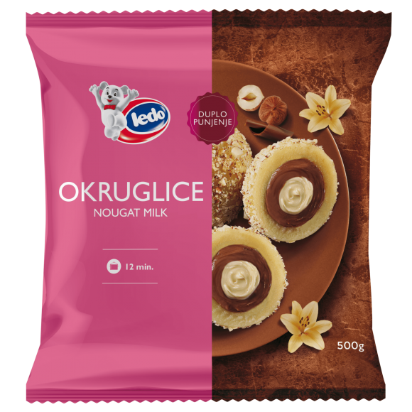 Duplo punjenje priuštit će vam duplo veći užitak, jer su nove okruglice od krumpirovog tijesta prve okruglice s duplim punjenjem proizvedene u Hrvatskoj. Nadjevi od mlijeka i nougata fine kremaste teksture te bogatog okusa mlijeka, čokolade i lješnjaka, zajedno čine zaokružen desert koji vas neće ostaviti ravnodušnim.