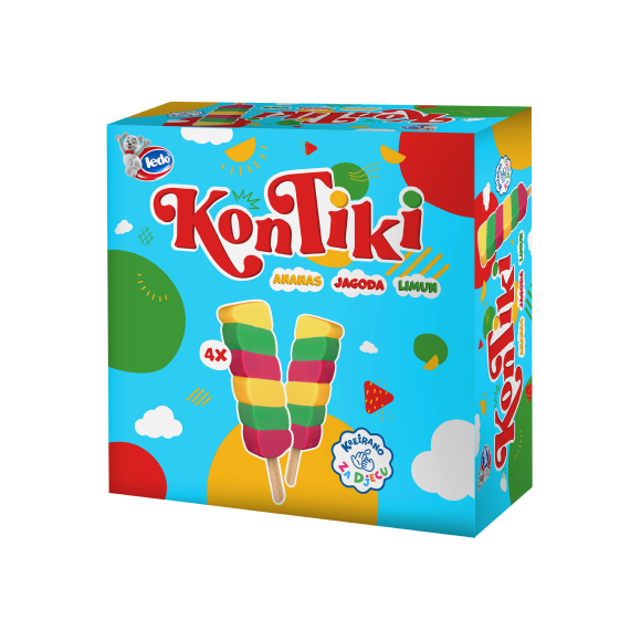 Novi Kontiki prilagođene recepture te osvježenog dizajna potražite u praktičnom multipack pakiranju koje sadrži četiri omiljena sladoleda. Osim što ovaj sladoled okusa jagode, limuna i ananasa nudi savršeno osvježenje u svakom zalogaju, kreiran je s ljubavlju i pažnjom prema djeci, što znači da je svaki zalogaj pažljivo osmišljen kako bi zadovoljio omiljene dječje okuse i nutritivne potrebe.