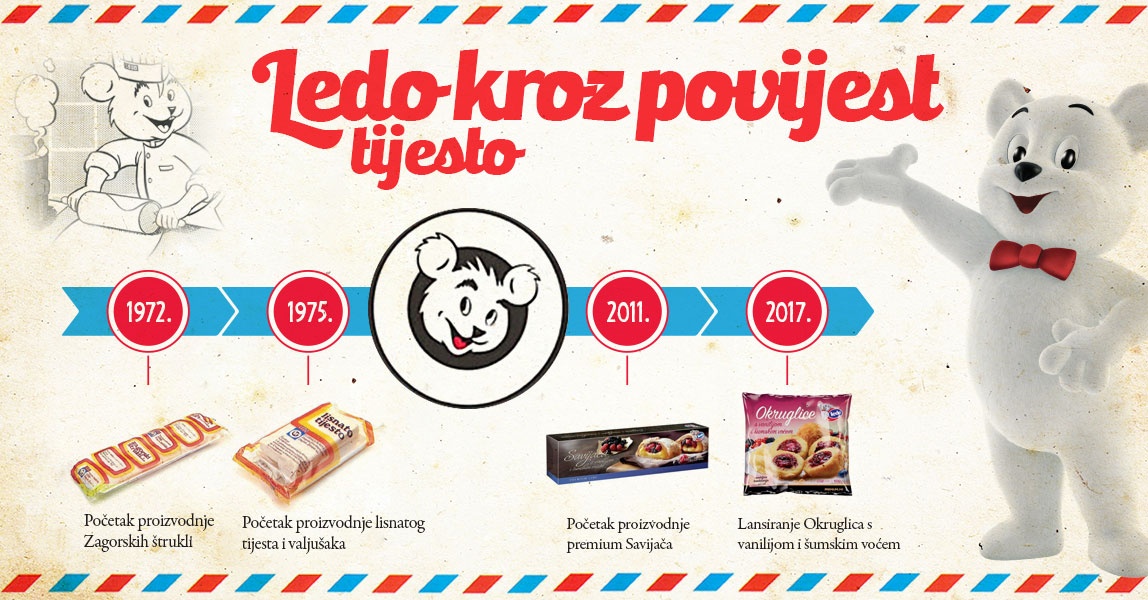 Od prvih štrukli i okruglica sa sirom s kojima je Ledo počeo proizvodnju tijesta davne 1972. godine pa do raznovrsnih savijača, valjušaka, njoka i okruglica koje danas krase asortiman od preko pedeset različitih vrsta jela od tijesta, prošlo je čak 45 godina.