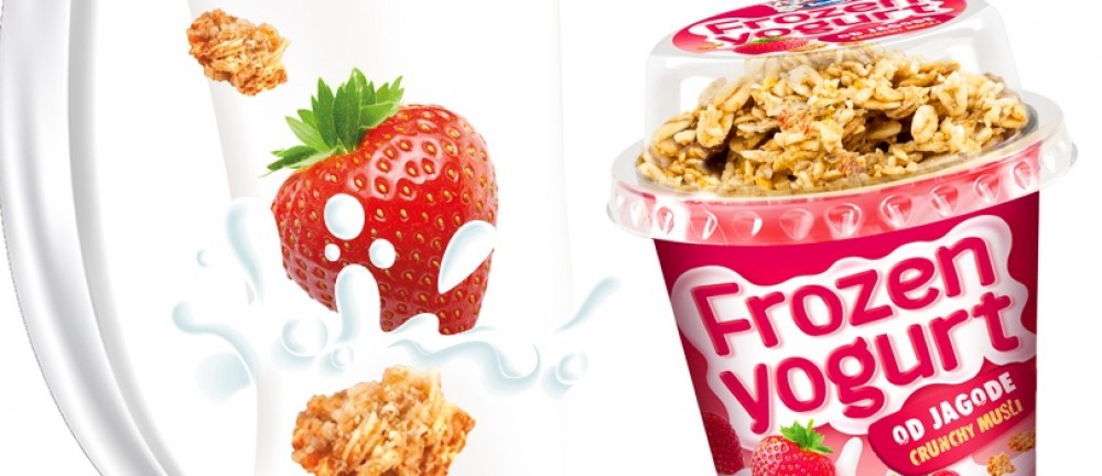 Frozen Yogurt – spoj je smrznutog jogurta i sladoleda od jagode prožet komadićima jagode, preliven najfinijim sosom od jagode i crunchy muesli komadićima. Ovaj ukusan i hranjiv užitak idealan je za svako doba dana, a sigurno će vas posebno razveseliti za vrijeme pauze na poslu, stanke od učenja ili kućanskih poslova.