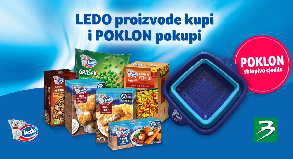 Kupite jedno Ledo povrće i jednu bilo koju Ledo Paniranu ribu i dobijte na dar sklopivo cjedilo.