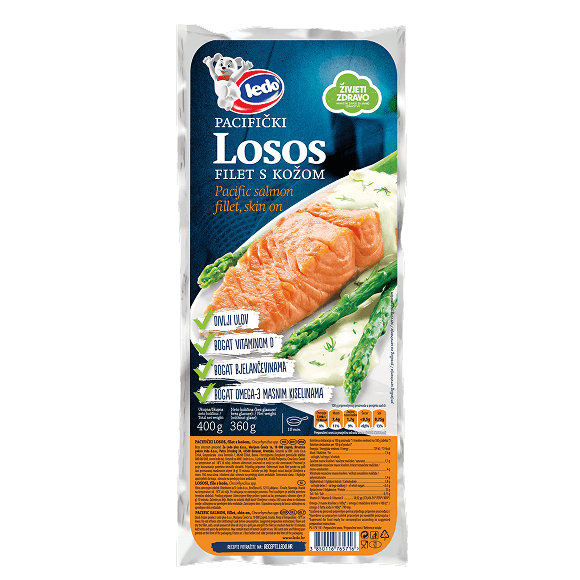 Ledo losos fileti sastoje se od 100 % fileta lososa i bogati su omega 3 masnim kiselinama. Losos fileti su namijenjeni ljubiteljima ribljih specijaliteta, posebice ljubiteljima plave ribe.
