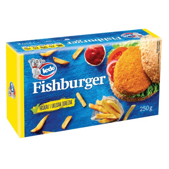 Nova poboljšana receptura Ledo Fishburgera oduševit će sve ljubitelje brzih zalogaja, a zahvaljujući sočnom ribljem mesu obavijenom u hrskavu panadu zasigurno će postati omiljeno jelo svih generacija u obitelji. Jednostavan za pripremu i gotov za tren odličan je izbor za brz obrok.