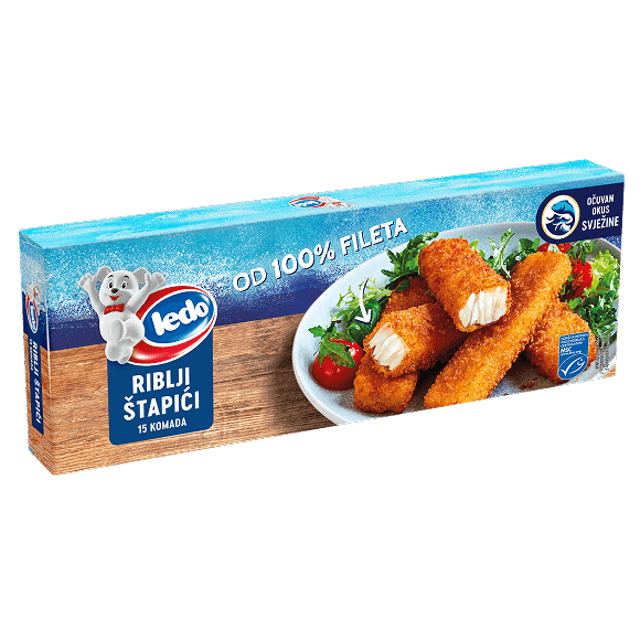Riblji štapići napravljeni su od 100% fileta aljaške kolje. Nakon što ih filetiramo i oblikujemo, štapiće paniramo u hrskavim krušnim mrvicama s dodatkom začina za zlatno-žutu boju. Ovi hrskavi štapići bogati su proteinima, a osim toga izvor su vitamina B12 i Omega-3 masnih kiselina. Jednostavna i brza priprema u pećnici, tavi ili fritezi, ove štapiće čini idealnim obrokom za cijelu obitelj!