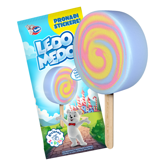 Ukusan, zabavan, šaren s najboljom recepturom dosad – ovogodišnji Ledo Medo spaja neodoljive okuse žvakaće gume i vanilije, a njegov veseo izgled u kombinaciji atraktivnih boja, plave, žute i roza, oduševit će svakog mališana.