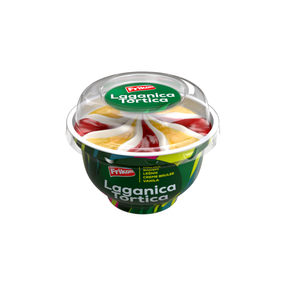 Laganica tortica je sladoled okusa lješnjaka obogaćen karameliziranim komadićima badema i preljevom od maline, sladoled okusa creme brulee i lješnjaka obogaćen karameliziranim komadićima badema preliven preljevom od maline i preljevom okusa vanilije.