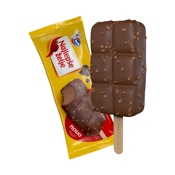 Već 100 godina, s punim srcem, najljepše čokolade sa žutim omotom i crvenim napisom svakodnevno nas usrećuju i uljepšavaju trenutke koje ćemo pamtiti zauvijek. Ovog ljeta odlučili smo predstaviti novo ledeno zadovoljstvo na štapiću u obliku čokoladne pločice. Ispod hrskavog bogatog sloja prave čokolade krije se sladoledna krema s okusom lješnjaka. Svaki zalogaj donosi prepoznatljiv, pun okus i savršen spoj čokolade i lješnjaka koji se lagano topi i pruža potpuni užitak.